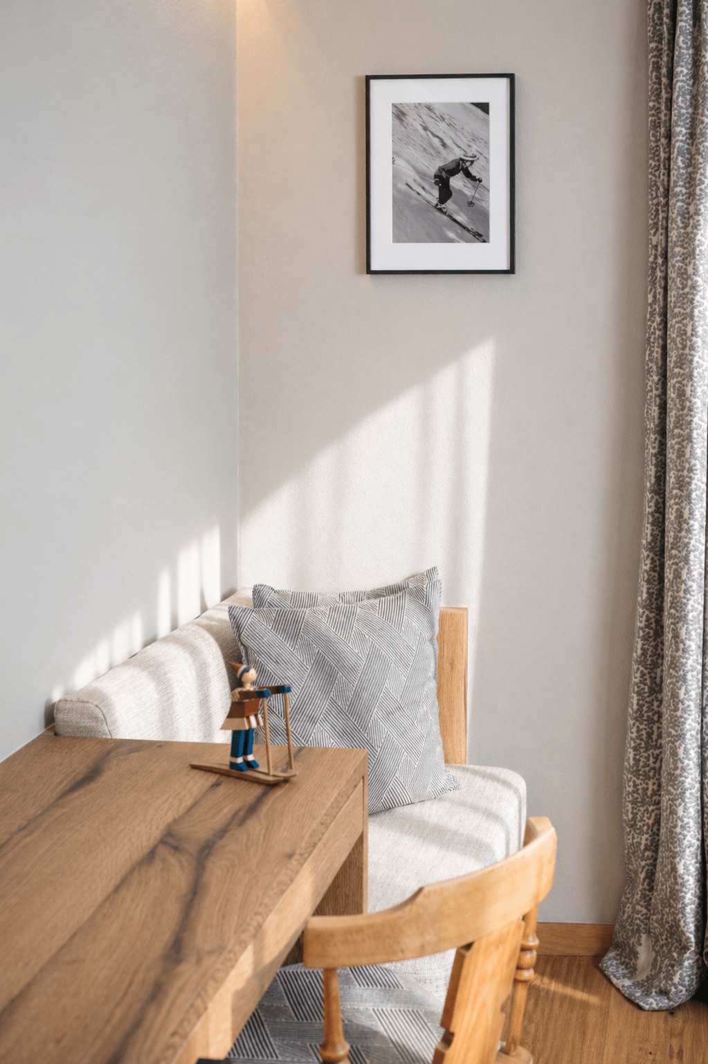 Superior Einzelzimmer auf 18 – 22 m² für Ihre Auszeit in den Bergen. Ein Ensemble aus Eichenparkett, durchdachten Licht- und Farbkonzepten und kuschelweichen Betten mit seidiger Bettwäsche. Mit Liebe zum Detail wurden Möbel und Stoffe ausgewählt, die österreichische Tradition mit modernem Flair verbinden. Das elegante Bad mit wohltuender Regendusche, freistehendem Waschtisch und Natursteinboden wird dabei ganz einfach zum Mini-SPA.